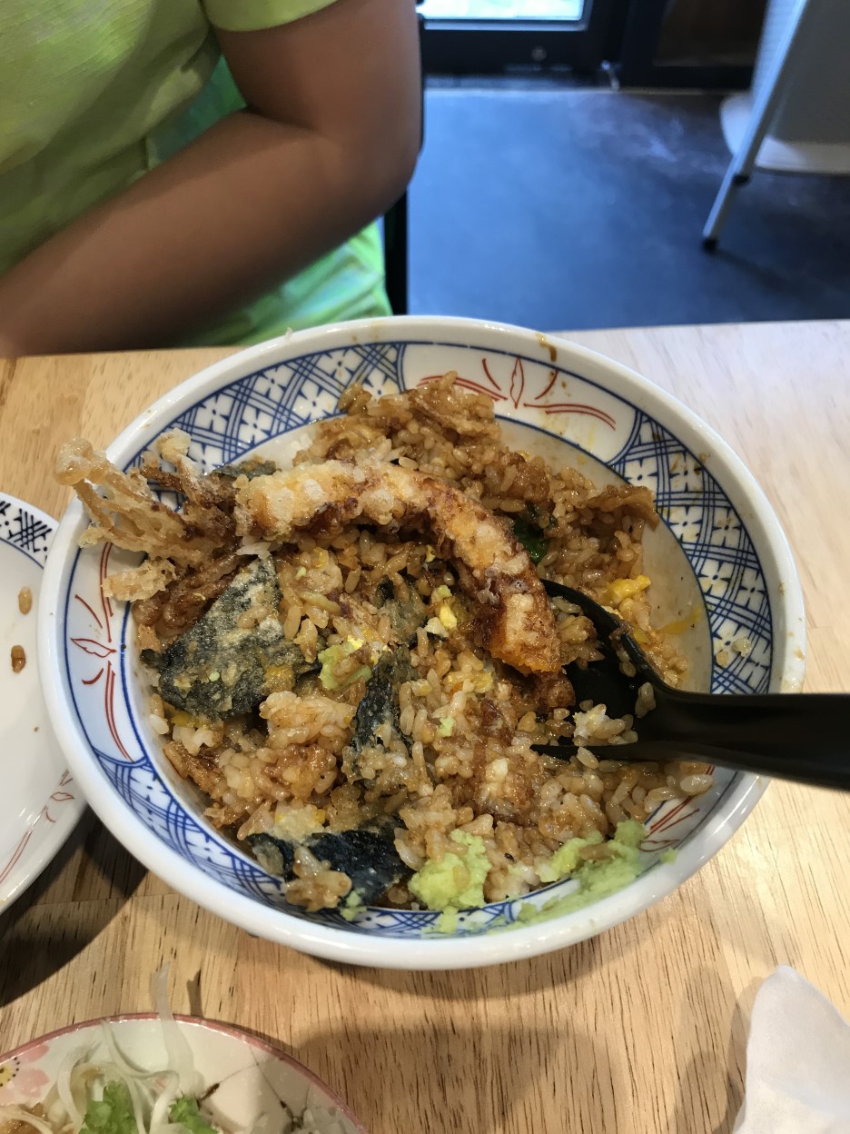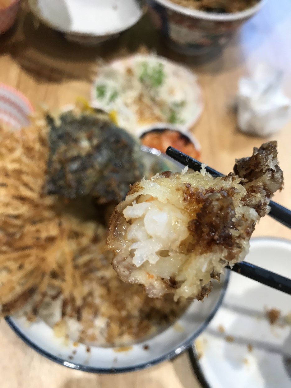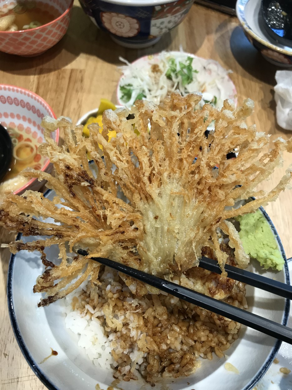 The mushrooms were nice because they were very crispy, but they felt a little greasy, so I decided to mix them with rice.