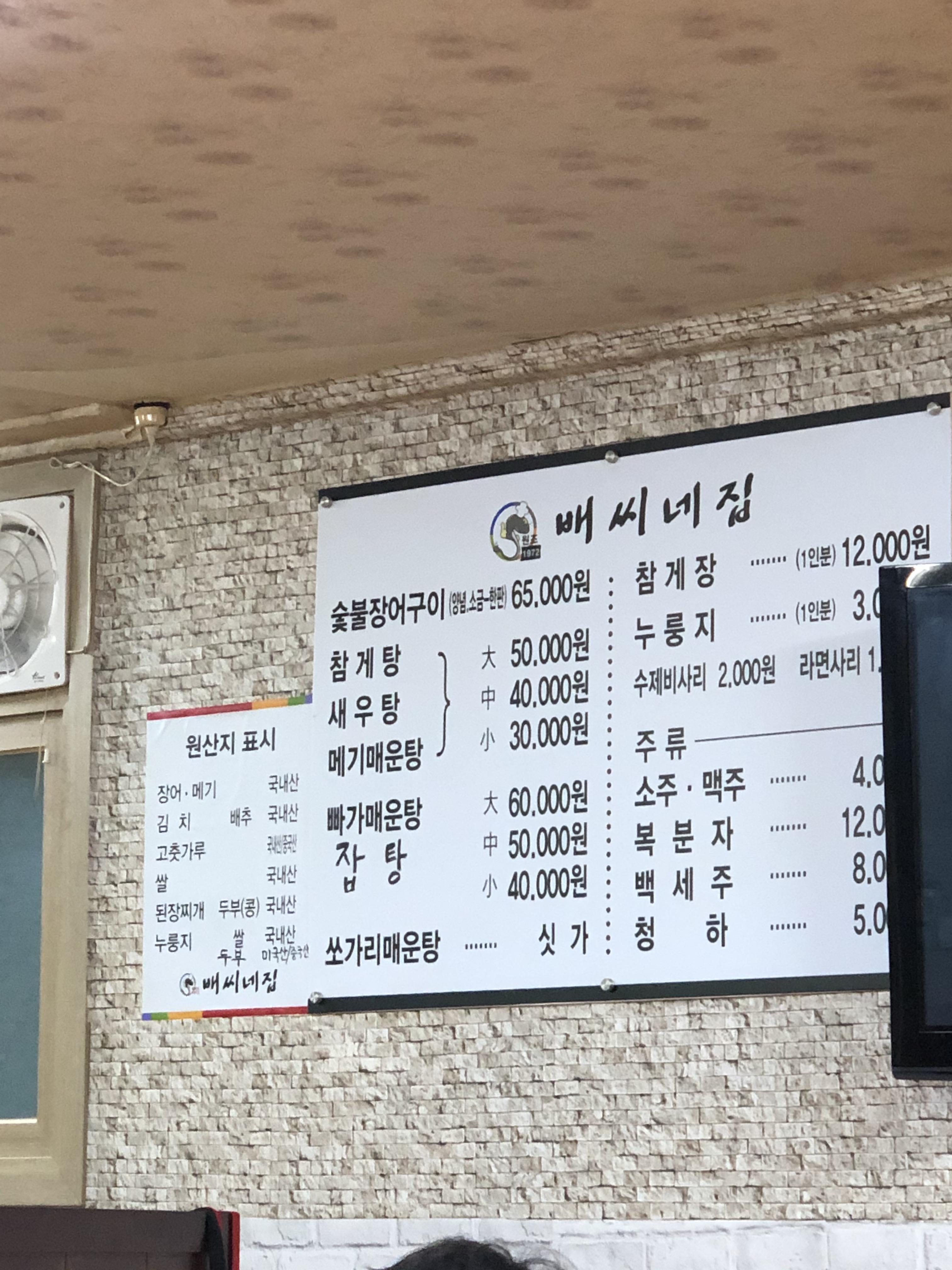 주메뉴는 장어구이와 참게탕인거 같은데 장어구이의 가격은 적당한 거 같아요!