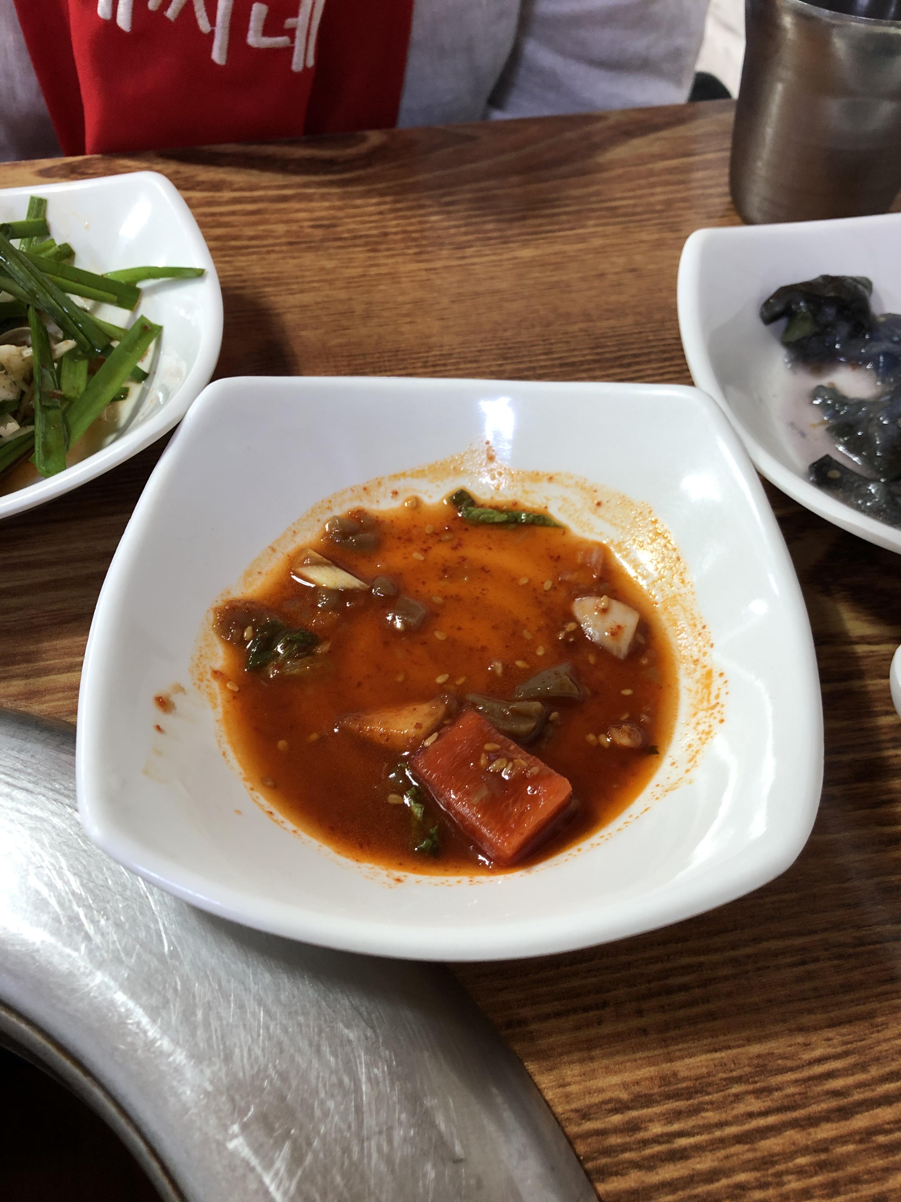 기본 반찬들은 말 그대로 기본 반찬의 구성이었는데 이 와중에 이 묵무침은 아주 기가 막혔어요!!