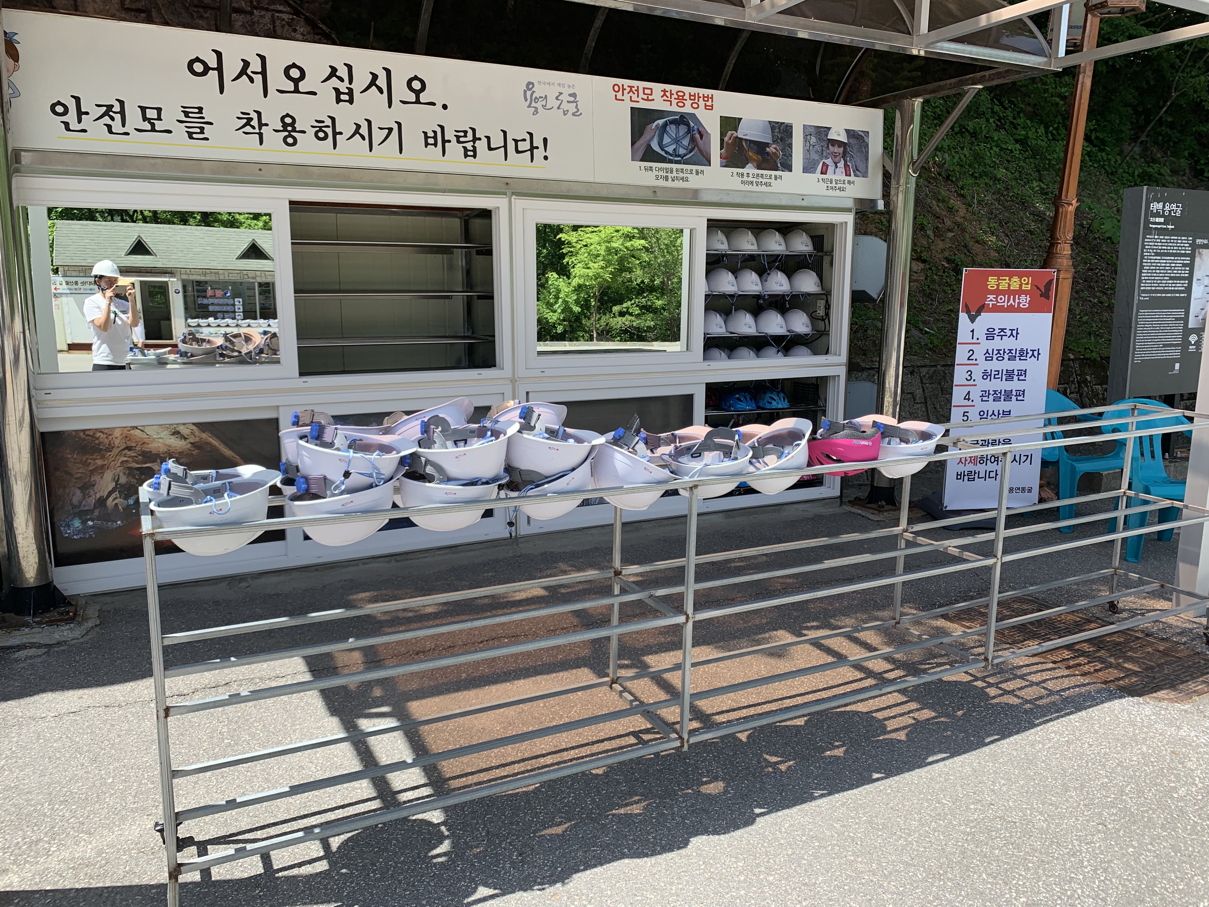 동굴내부 중간중간 앉아서 이동해야 할정도로 낮은 곳이 있기때문에 안전모는 필수이다.