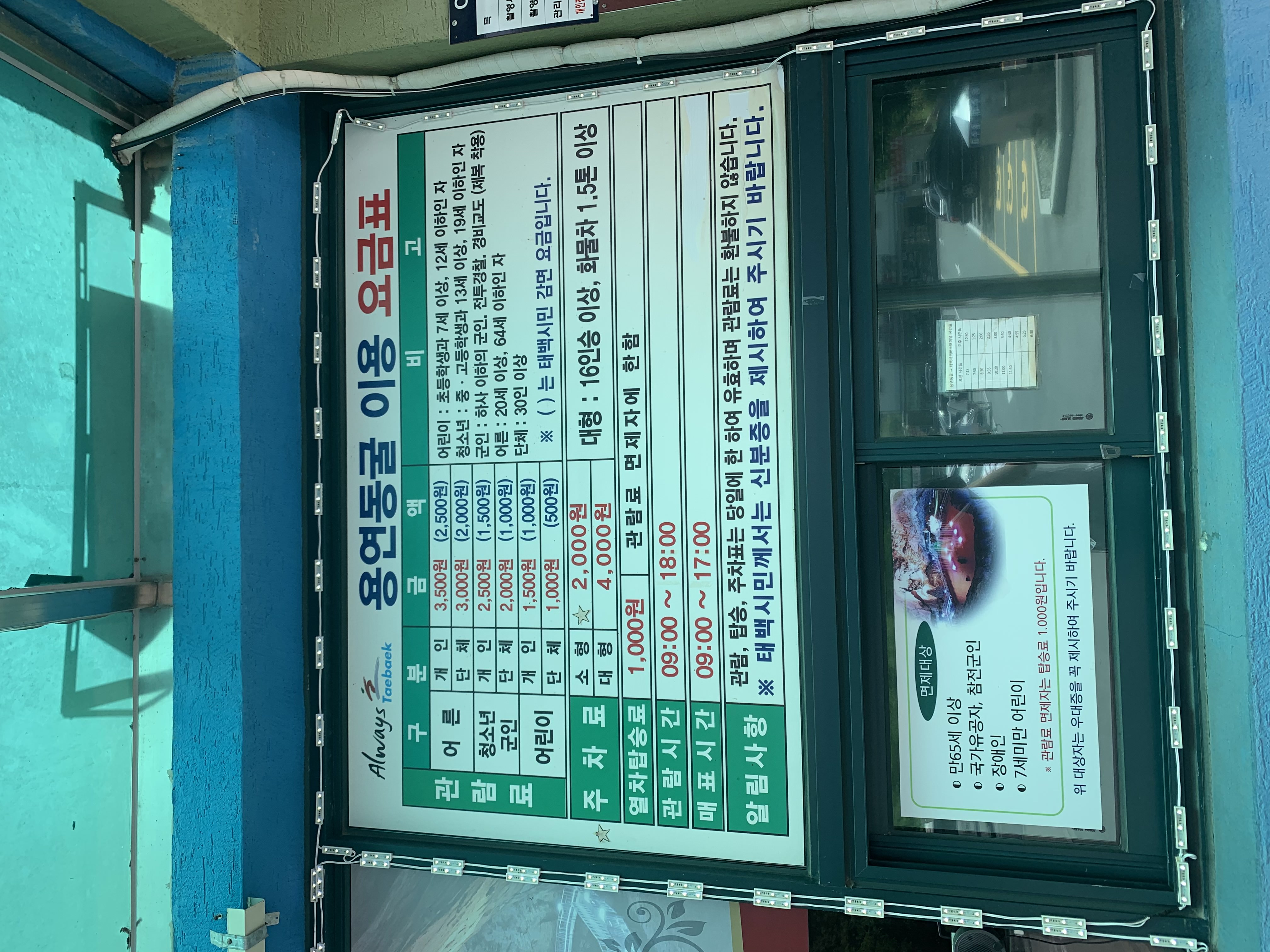 The price is 3,500 won for adults and 1,500 won for children. Tickets range from 9:00 to 18:00 and from 9:00 to 17:00.