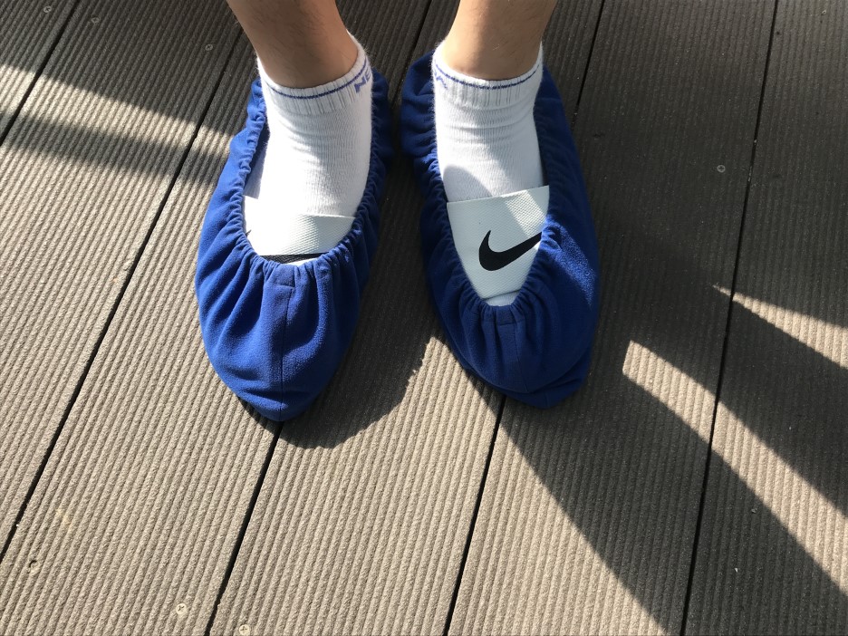 어떤 목적으로 덧신을 신는지는 확실히는 모르겠지만 아마 청결이나 구조물 손상방지 목적으로 보인다.